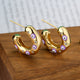 Add a dash of sass and a sprinkle of luck to your ear game. Our Evil Eye Huggie Hoops feature a chunky gold base dotted with colourful enamel evil eyes and sparkling crystals β made to guard your aura while turning heads.