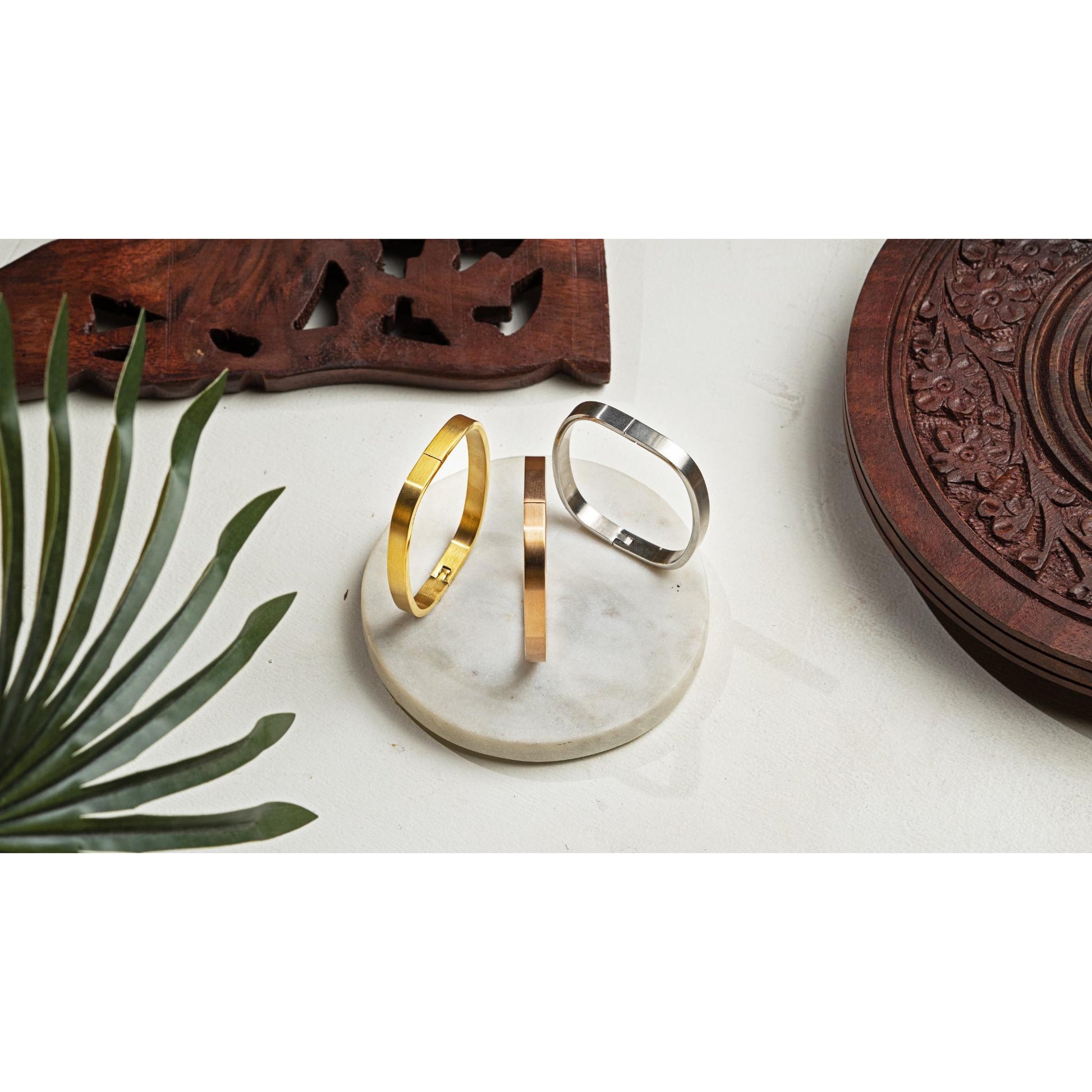 The Linear Luxe Bangles bring clean geometry and smooth satin-finish metals together in a bold yet minimal silhouette. Crafted in stainless steel with anti-tarnish and waterproof coating, these bangles are made to elevate your everyday — from boardroom to bar.