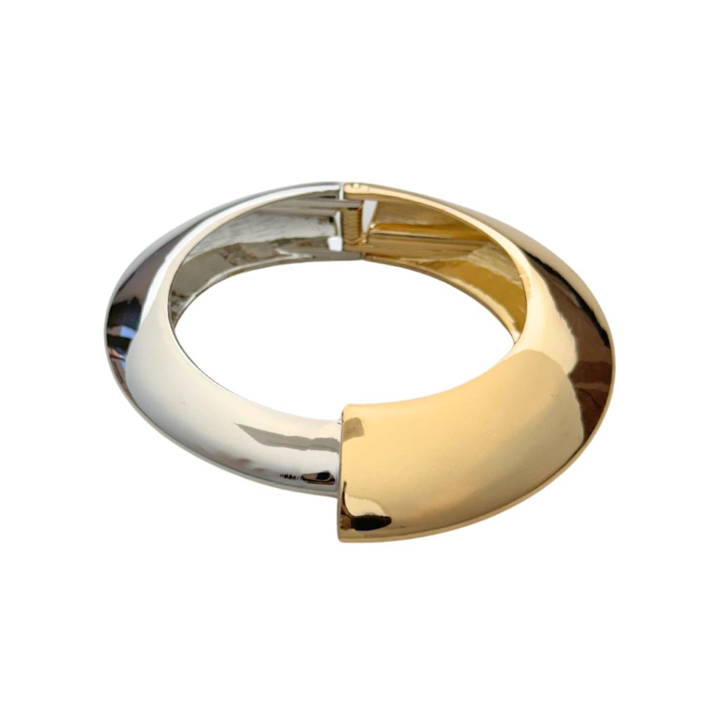 Make a bold and timeless statement with our Dual Tone Gold & Silver Bracelet, a modern twist on classic elegance. Crafted with a luxurious anti-tarnish finish, this bracelet features a unique half-gold, half-silver design that adds instant sophistication to any outfit. The sleek, chunky form and smooth polish make it a standout accessory whether you're dressing up for a party or elevating your everyday look.