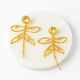 The Flutterline Drops are handcrafted statements that capture the delicate rhythm of dragonfly wings in motion. With an airy gold wire frame and pearl-dome tops, these earrings add whimsy, elegance, and a dash of drama—without any of the weight. They're light as air, bold by design, and made for the dreamers.