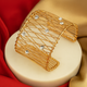 Add a spark of modern glamour with the Aurora Mesh Cuff, a bold gold wire bracelet embellished with radiant crystal accents. Handcrafted in a lattice-inspired mesh design, this statement cuff is lightweight, anti-tarnish, and designed for all-day comfort.