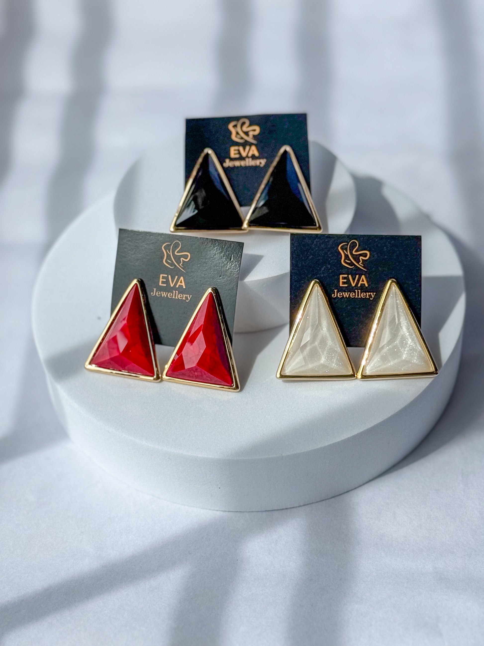 Meet Geometric Triangle Stud Earrings by Eva Jewellery—a modern, geometric take on everyday studs. The high-gloss enamel finish framed in gold-tone detailing gives instant polish, while our anti-tarnish, nickel-free build keeps them comfortable for all-day wear. Style them with formals, weekend basics, or festive outfits; these women’s triangle stud earrings are your easy statement from office to party.